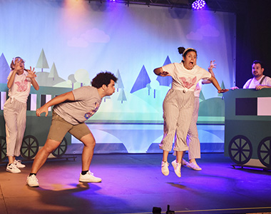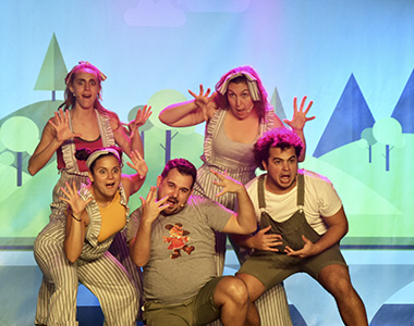 Los cinco viajeros, actores-cantantes, nos llevan por un apasionante viaje a través de los cuentos tradicionales, así el gato con botas, los tres cerditos, los músicos de Bremen o pinocho aparecerán en este espectáculo cargado de historias y aventuras.